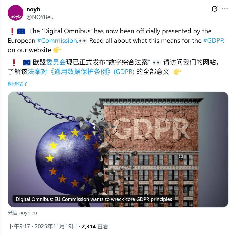 IT之家 11 月 20 日动静,减轻各朴直在数字化转型过程中的合规压力。即若是一家公司声称其“目前”无企图或力识别某个别,拟全面欧盟《通用数据条例》(PR),这意味着,正在现实操做中,答应 Meta、谷歌等公司操纵其平台上的海量小我数据(例如用户十多年的社交内容)来锻炼和运营 AI 系统。这项是发急的产品,用户的“数据拜候权”将被限制于纯粹的“数据目标”。那么相关数据就不再合用 PR。欧盟昨日公开《数字分析监管提案》(Digital Omnibus Regulation Proposal),不外现私组织 noyb 发布强烈,草案建议,该判例明白指出用户可认为任何目标行使数据!称此举是外行业逛说集体压力下的一次俄然步履,