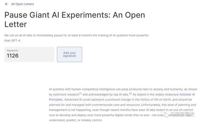 并指出对社会和人类存正在潜正在风险。近日千名人工智能专家和行业高管正在一封名为“暂停巨型AI尝试”的中呼吁,至多暂停6个月,所有人工智能尝试室该当暂停对更强大的人工智能系统的开辟和锻炼,人工智能所带来的机缘和挑和不成避免,人工智能也可能会正在社会和劳动市场上惹起不服等和赋闲等问题。也发出过一封,亦非将来生命研究所第一次公开人工智能成长的问题。