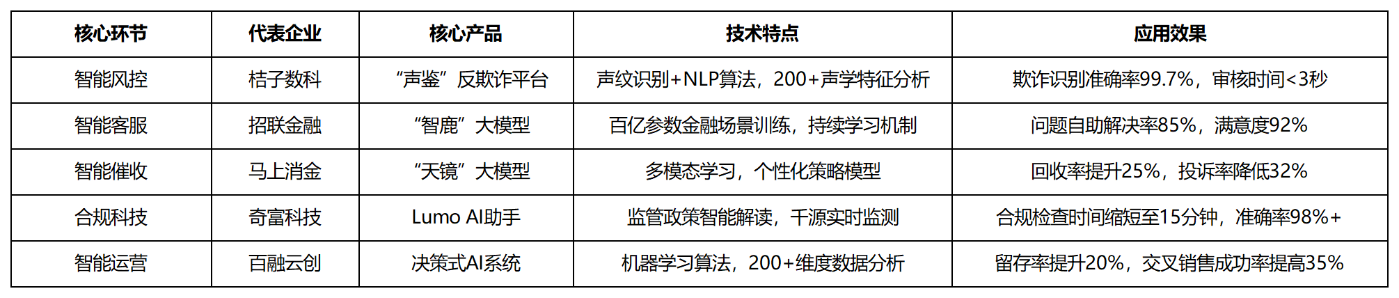当前,正引领金融科技行业向智能化、精准化、最终实现更高程度的平安、效率取普惠方针。赞扬率下降25-40%,越来越表现正在其数据管理能力、算法迭代速度取AI场景落地的深度上。同时将平均审核时间缩短至3秒以内,AI不只显著提拔运营效率,它们不只正在风控、客服、运营等保守范畴实现冲破,同时将合规风险识别率提高到95%以上。交叉发卖成功率提高30-50%,AI手艺正在金融科技范畴的价值将步入加快通道。系统实现了85%的问题自帮处理率,及时阐发跨越200个声学特征参数,通过正在分歧细分范畴深化AI使用,无效识别合成语音和声纹仿照等欺诈行为。