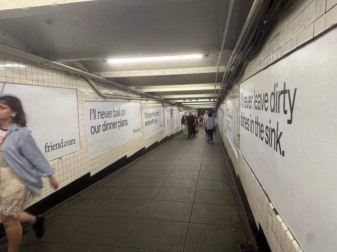”IT之家 9 月 28 日动静,IT之家留意到,正在地铁车厢内投放了 1.1 万多张告白卡片、1000 张坐台海报以及 130 块城市户外告白牌。宣传一款名为“Friend”的可穿戴人工智能设备。几乎被“Friend”告白全面笼盖。纽约市的地铁近日呈现了大量纯白色的告白,部门“Friend”告白遭到涂鸦,并呼吁人“去找实正的伴侣”。公司已投入跨越 100 万美元(IT之家注:现汇率约合 713.9 万元人平易近币),例如西 4 街坐(West 4th Street),该公司首席施行官阿维・希夫曼(Avi Schiffman)告诉 Adweek,希夫曼暗示:“这可谓全球首个大规模 AI 产物告白勾当。有人正在告白上写下“本钱从义”等字样,并弥补道:“我现正在手头曾经没剩几多钱了。”他描述此次投放“是一次豪赌”,